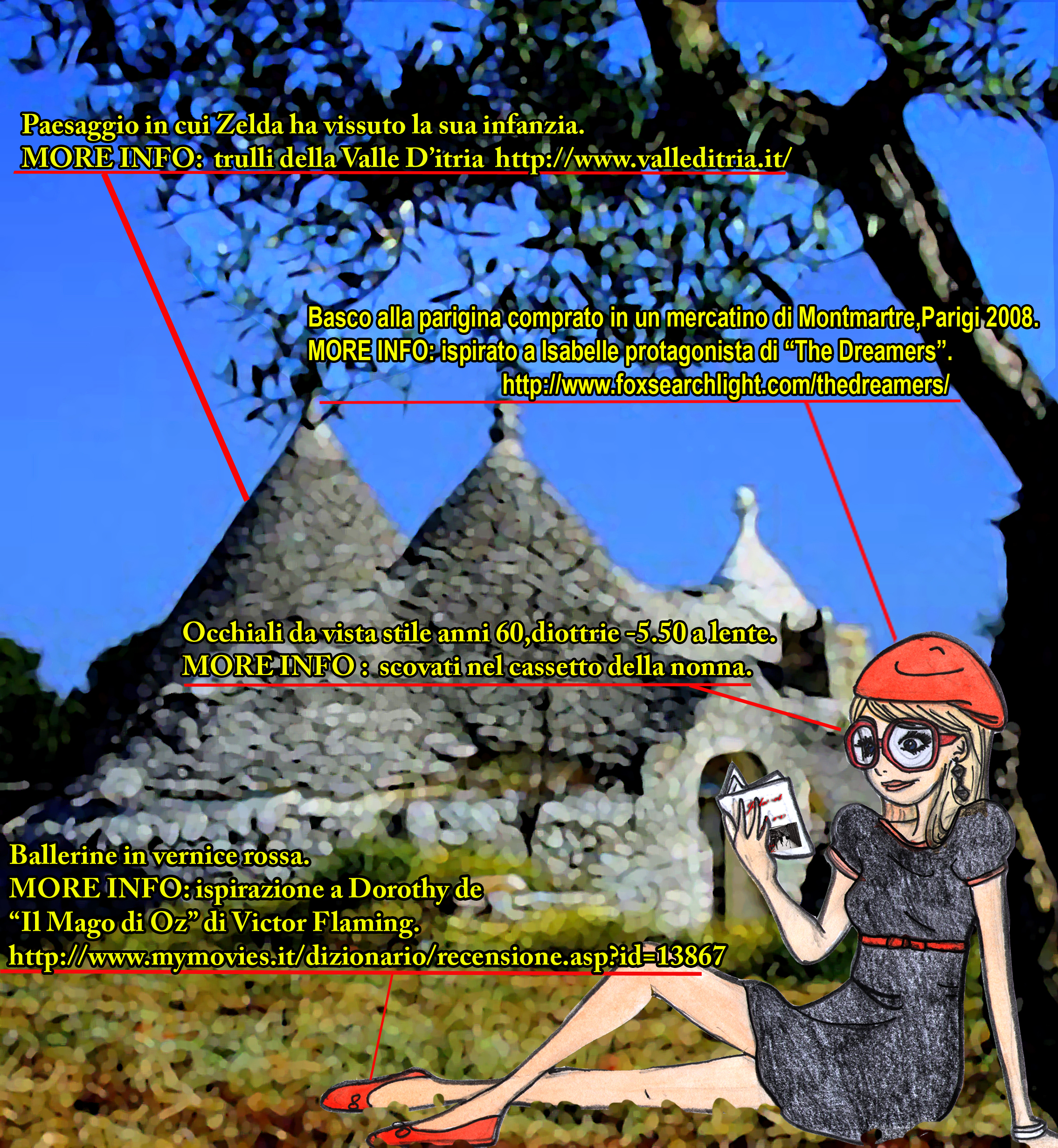 A Zelda piace: conoscere e ottenere informazioni in tempo reale su quello che si vuole e in base all’emozione che deriva dal contesto. Perché Zelda il vestitino per il volo dell’angelo come in “Dirty Dancing” non l’ha mai trovato come lo voleva…