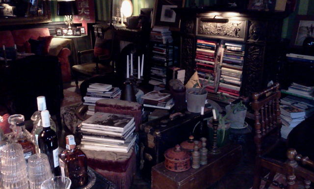 La luce soffusa delle abat-jour illumina un percorso articolato in quattro stanze, dove libri e oggetti d’ogni sorta profumano di passato. Quando il mio sguardo incrocia la testa di un demone scolpito alla base di una lampada, si interrompe questa poetica quiete. Anche per me è ora di tornare a casa.