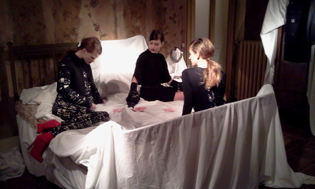 Un lampadario in vetro di murano e foglie secche sul pavimento, affreschi corrosi sui soffitti e sulle pareti, antichi mobili ricoperti da lenzuola. È questa l’atmosfera che accoglie gli ospiti per la presentazione della collezione A/I 2011/2012 Piazza Sempione all’interno de “La Casa dei Demoni”.