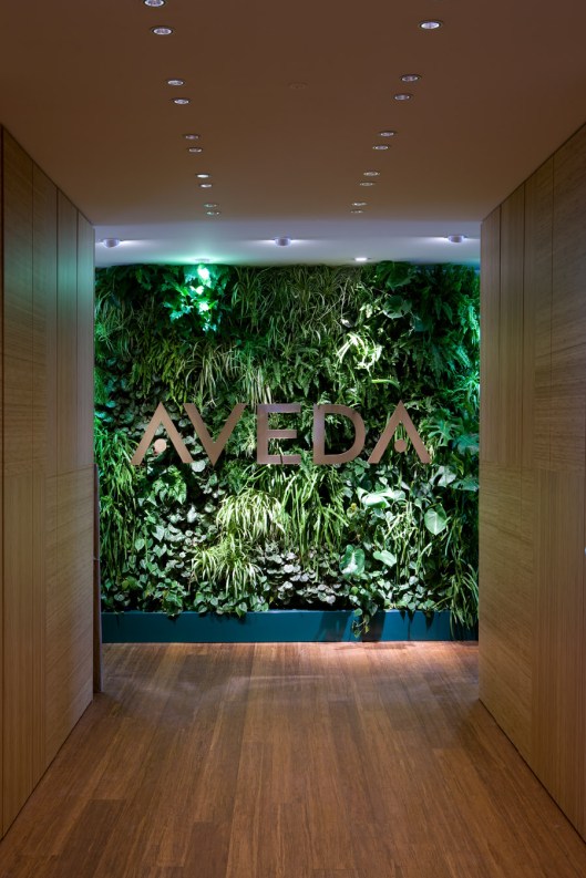 Ho visitato la sede Aveda a Milano (all’ottavo piano di un palazzo in Via Turati 40) e sono stata catapultata in un pianeta del tutto nuovo per me. Non pensavo esistessero ambienti di lavoro così soft 🙂 Divisi tra gli uffici del team Aveda Italia ed i centri dell’Hair Styling e della SPA, gli spazi si “vestono” di green coerentemente con la filosofia eco-compatibile: dal muro vegetale che isola termicamente l’ambiente ai muschi che si alimentano solo di umidità nella zona dei lavatesta, arredi e postazioni a basso impatto ambientale, vernici eco-attive in grado di ripulire l’aria da agenti inquinanti tossici, lampadine a basso consumo, sensori per economizzare l’energia elettrica.