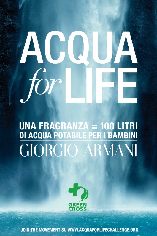 Potete sostenere il progetto Acqua for Life non solo acquistando le due fragranze Acqua di Giò e Acqua di Gioia, ma anche aiutando a diffondere il messaggio attraverso il passaparola online sulla pagina Facebook “Acqua for Life” , visitando il sito www.acquaforlifechallenge.org e condividendo la vostra Water Race.